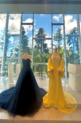 例えば、式場で使われたお花をドライフラワーにしてアロマキャンドルにリメイク。さらにこれらの花材を使って「アップサイクルサシェ(香り袋)」も制作しています。役目を終えた花を華やかなアイテムに生まれ変わらせ、再び世の中へ届けています。もう一つの取り組みは、アップサイクルドレス。何度もレンタルされ、廃棄される予定のウェディングドレスやタキシードからまだ使用できる美しいパーツを組みわせて制作するドレスにも力を入れています。