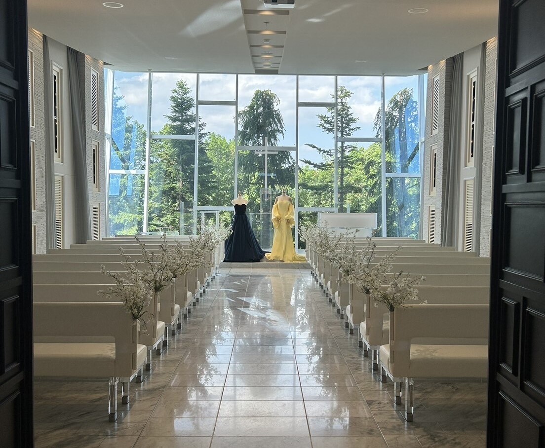 また、今回お伺いしたヒルサイドクラブ迎賓館札幌は、周りを自然豊かな木々に囲まれているため、緑を背景に綺麗なドレスとタキシードがとても映えます。誰が見ても感動する風景となっています。